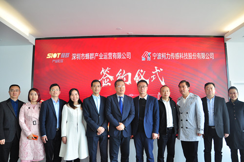 2020年4月9日,寧波柯力傳感科技股份有限公司與深圳市蜂群產(chǎn)業(yè)運營有限公司舉辦簽約儀式,共同打造AIOT智能物聯(lián)網(wǎng)寧波江北協(xié)同創(chuàng)新基地。寧波市經(jīng)濟和信息化局副局長戴云、柯力傳感董事長兼總裁柯建東、蜂群產(chǎn)業(yè)社區(qū)董事長姜勇、寧波市經(jīng)信局產(chǎn)業(yè)數(shù)字化處處長高光耀、江北工業(yè)區(qū)管委會主任鄒旭明、江北經(jīng)信局副局長應(yīng)月波、江北駐深招商引智聯(lián)絡(luò)處主任顧旭東等共同出席雙方會談并見證簽約儀式。