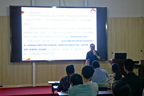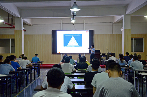 最后,王樹(shù)永老師圍繞“柯力精益生產(chǎn)推進(jìn)機(jī)制”對(duì)安徽公司全體管理人員進(jìn)行了培訓(xùn),從工作三活動(dòng)、七大浪費(fèi)、改善四原則等方面闡述和講解。